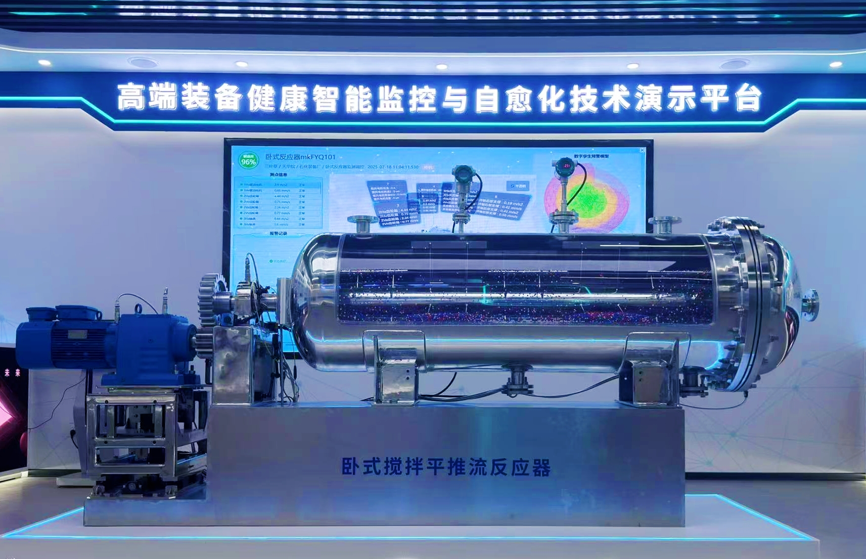 展区生动展示了天华院与北京化工大学强强联合、深化产学研合作的最新成果,包括卧式反应器搅拌轴防碰撞预警、齿轮副润滑不良故障自愈调控、轴系不对中故障自愈调控技术在内的多项前沿技术,以及具有实时监测、智能诊断、预测性维护及初步自愈能力的可视化系统平台。